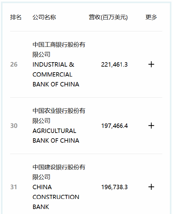 中国上榜的银行机构包括中国工商银行(第26位)、中国农业银行(第30位)、中国建设银行(第31位)、中国银行(第38位)、交通银行(第168位)、招商银行(第193位)、兴业银行(第242位)、上海浦东发展银行(第309位)、中国民生银行(第387位)9家。这些机构业务覆盖广泛,综合实力在全球银行业中占据重要地位。